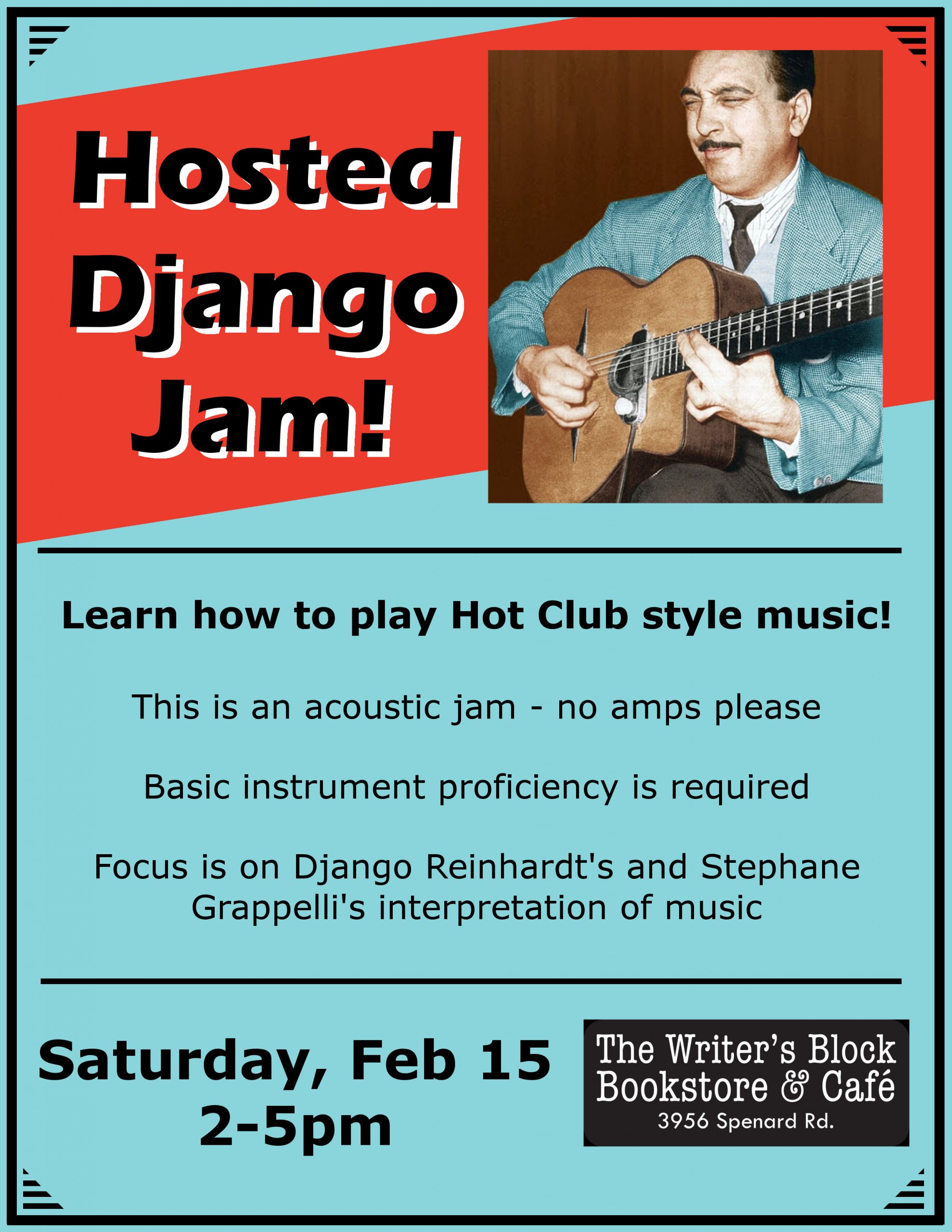 Join members of the Hot Club of Nunaka as they jam some Django Reinhardt. Bring your own un-amplified instrument to throw in!